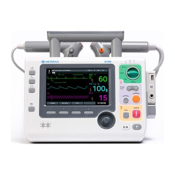 This defibrillator has 3/5 channel ECG monitoring, which can be printed if needed or connected to the modern central computer system.